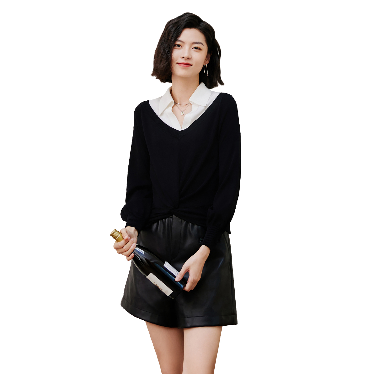 羊毛上衣 2025新款 打底衫 女半高领黑色内搭高级感秋冬针织毛衣女装