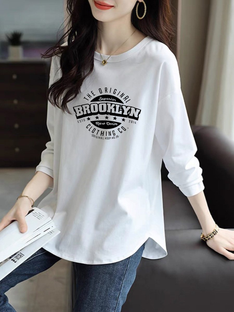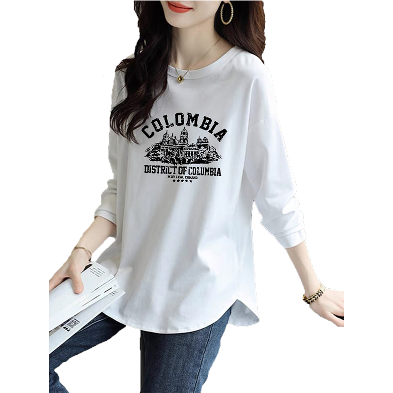 不规则内搭打底衫 高级感加绒中长款 白色上衣 t恤女秋冬季 纯棉长袖