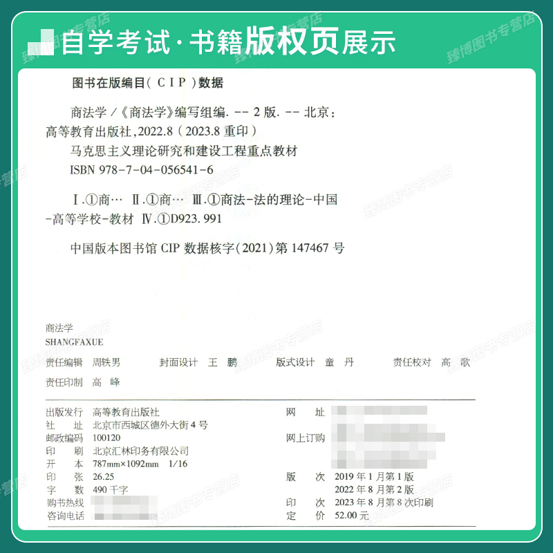 社山东北京甘肃陕西贵州新疆等法学专业自学考试教材考研教材 商法学编写组高等教育出版 自考教材00808商法 第二版