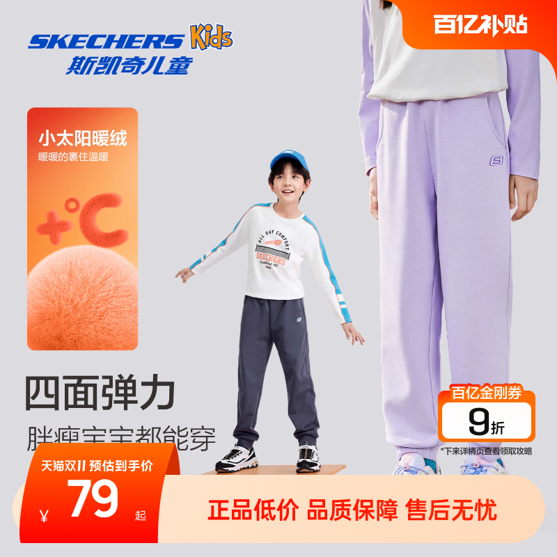 青少年加绒针织长裤 Skechers斯凯奇童装 运动裤 儿童秋季 男女童卫裤