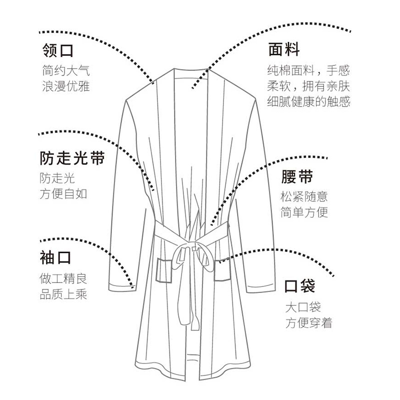 男士 睡袍女夏款 日式 浴袍春秋中长款 睡衣和服家居服晨袍 纯棉情侣款