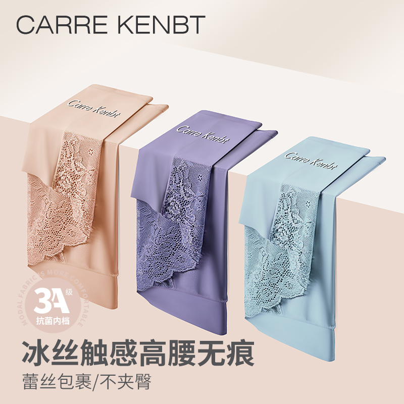 三角裤 CarreKenbt蕾丝高腰内裤 大码 性感薄款 女士冰丝无痕透气夏季