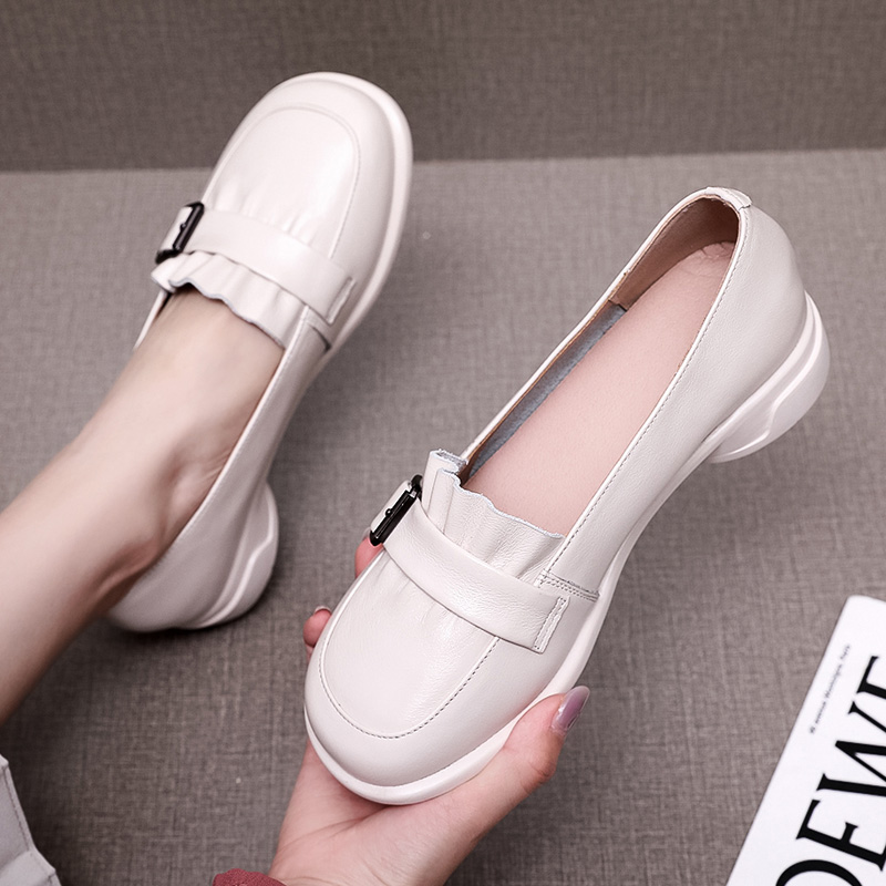 春秋款 2025新款 休闲女鞋 大码 圆头平底真皮单鞋 皮鞋 女一脚蹬乐福鞋