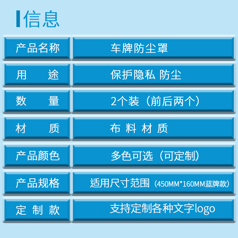 汽车牌套防尘罩牌照套车牌隐私罩加厚牌照布改装 logo二手车定制罩