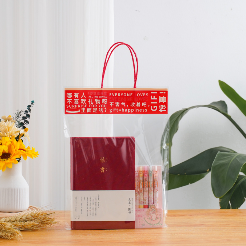 ins可爱手拎袋毕业文具手提礼品袋opp礼物透明打包袋便携式 手提袋