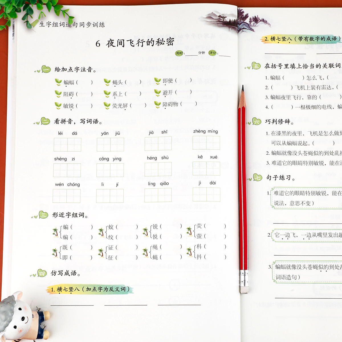 四年级生字组词造句同步训练上册人教版 课本教辅上 字词句段训练题默写能手连词成句小学生4年级上学期语文专项训练统编教材部编版