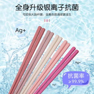 双枪饱饱熊316L不锈钢筷子抗菌防霉防滑防烫耐高温筷子家用高档