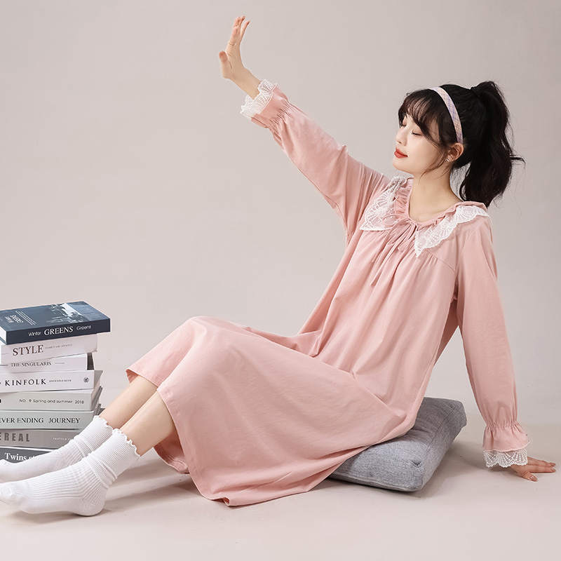 家居服 睡衣超长裙休闲可外穿大码 轩靓2025新款 睡裙女春秋纯棉长袖