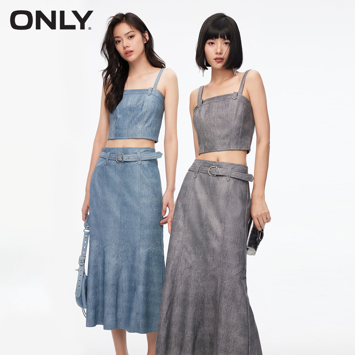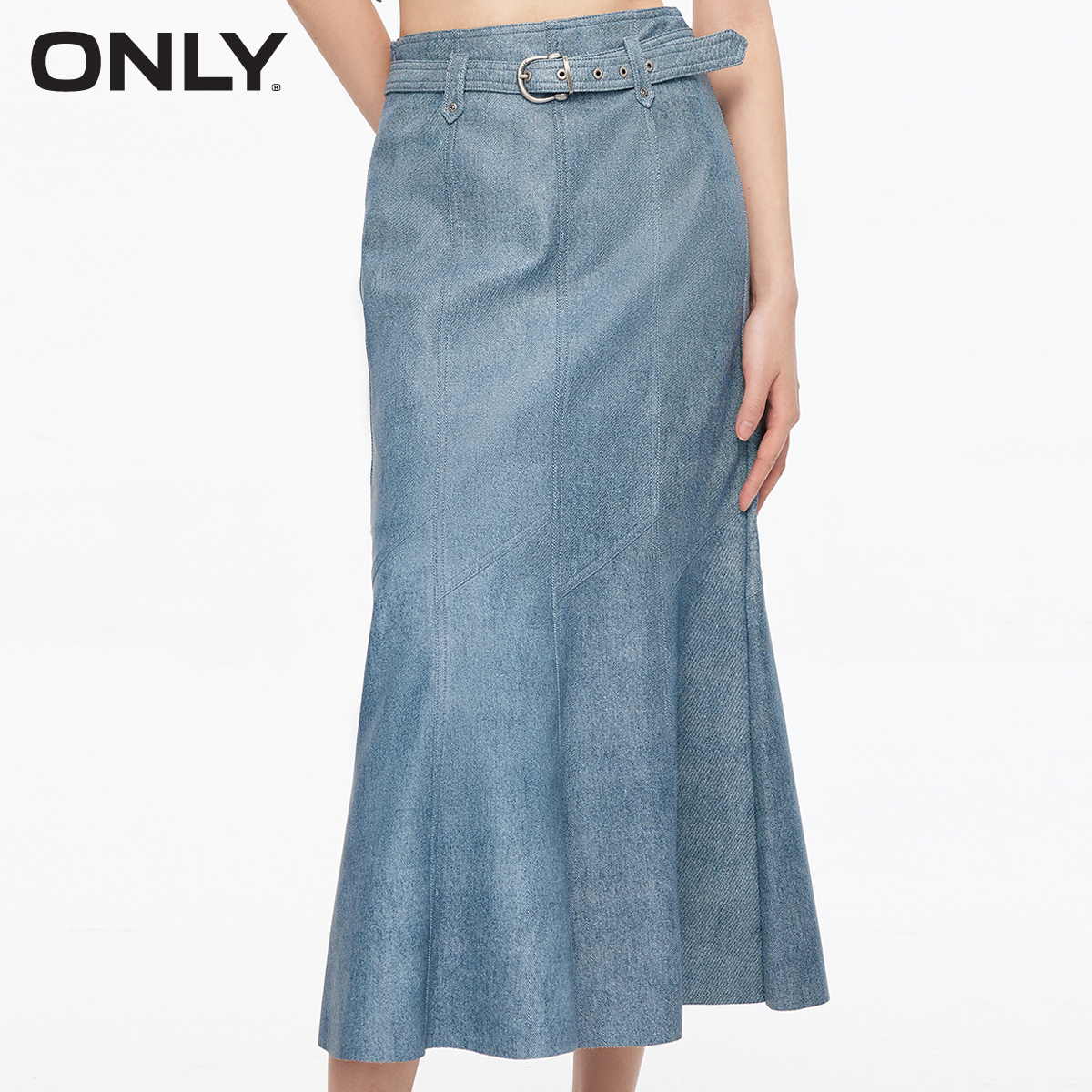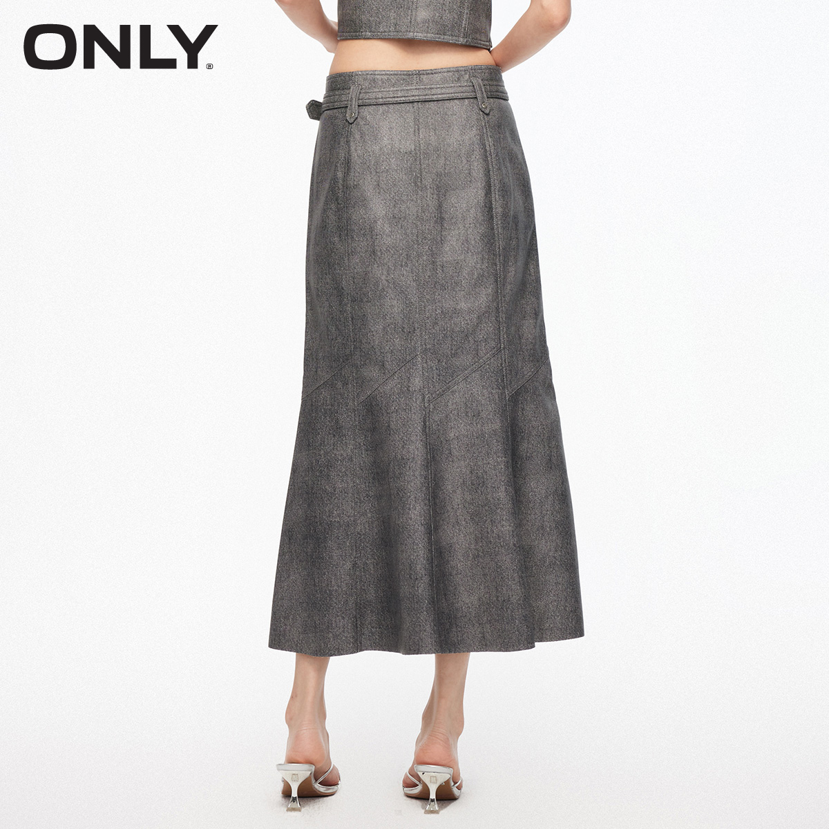 设计感高腰中长款 秋季 PU鱼尾裙半身裙女 ONLY奥莱