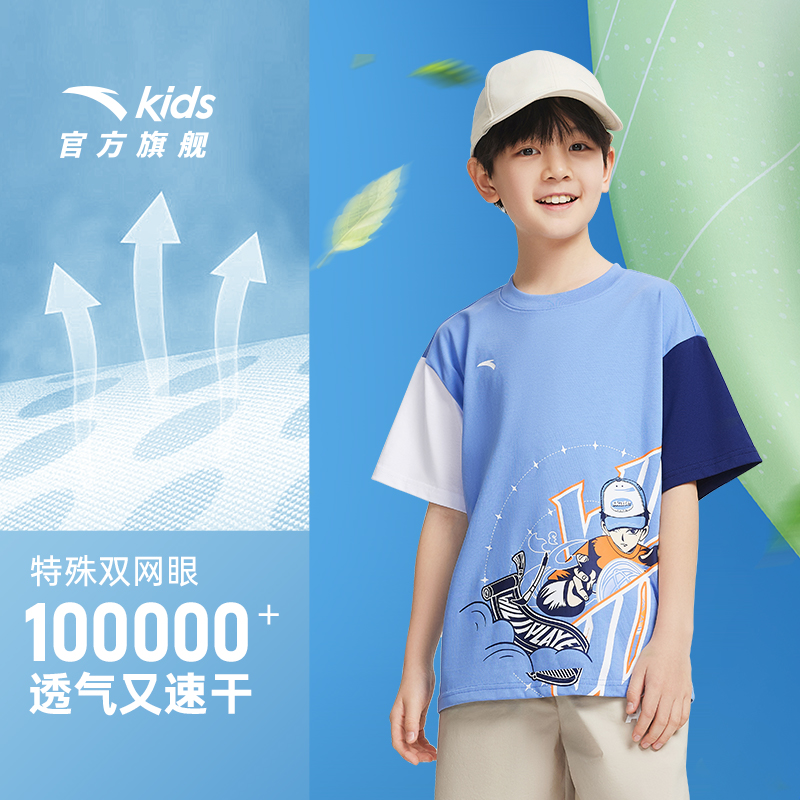 男大小童吸汗透气冰爽小薄荷短袖 夏季 T恤 衫 安踏儿童针织短袖