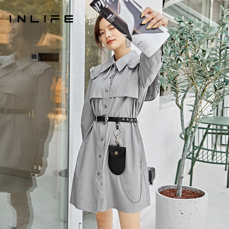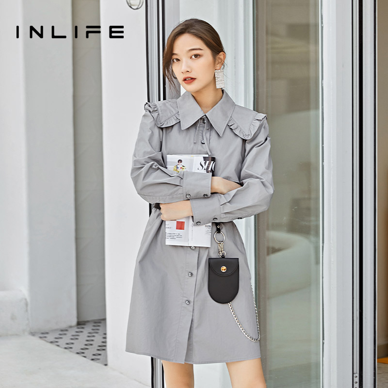 裙 A字衬衫 inlife甜美花边领连衣裙女25春新款 小个子设计感泡泡袖