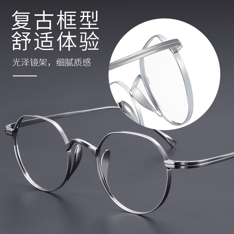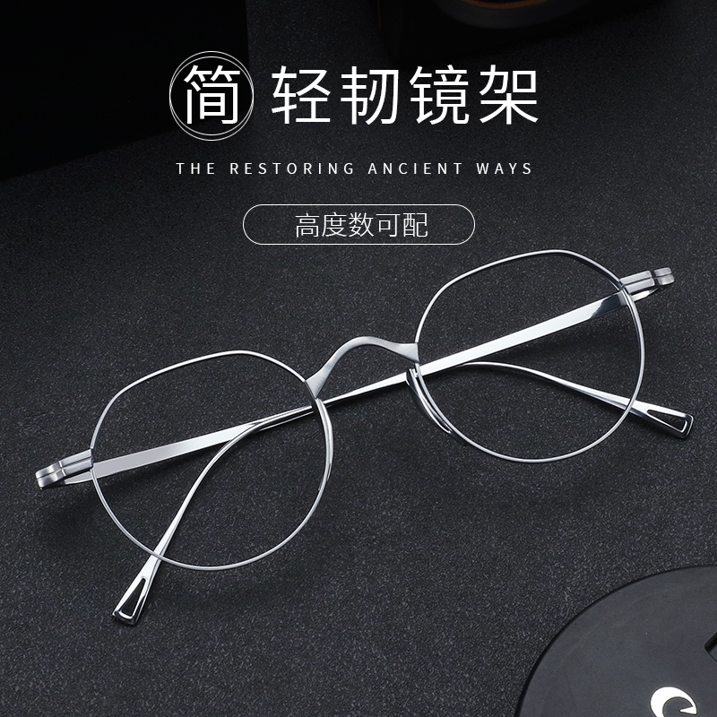超轻纯钛圆框近视眼镜女可配度数复古宽边眼睛框镜架男素颜平光镜