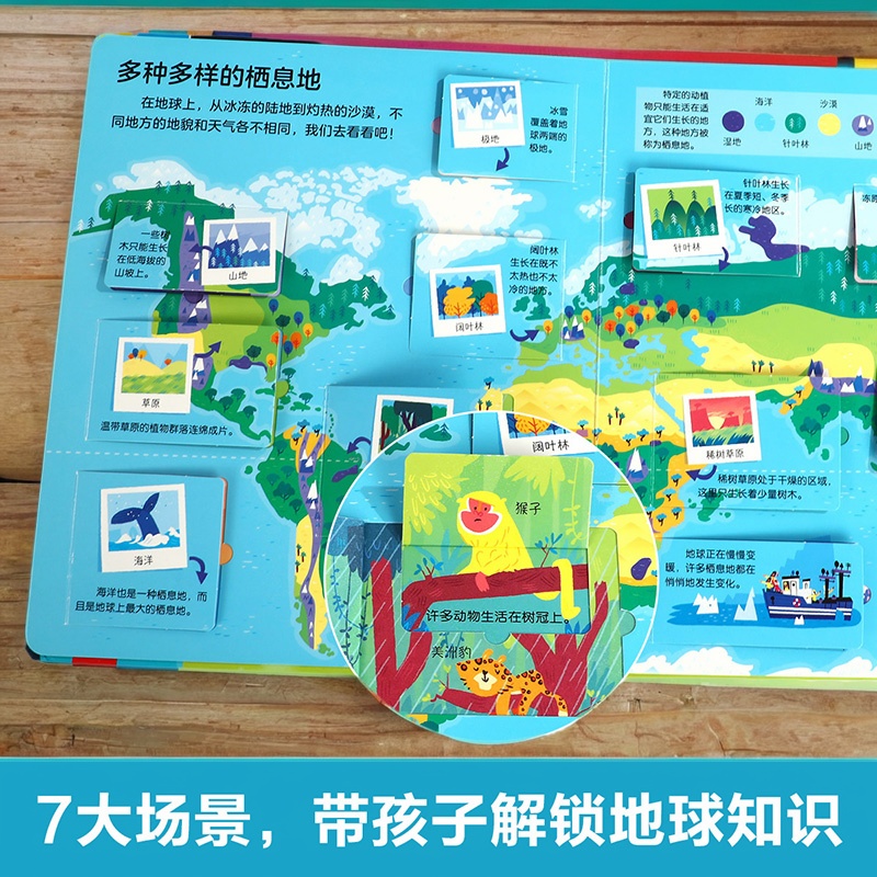 揭秘地球乐乐趣揭秘系列儿童翻翻书 6岁科普百科全书小学生幼儿园学前机关课外阅读早教益智绘本揭秘低幼翻翻书 揭秘旗舰店