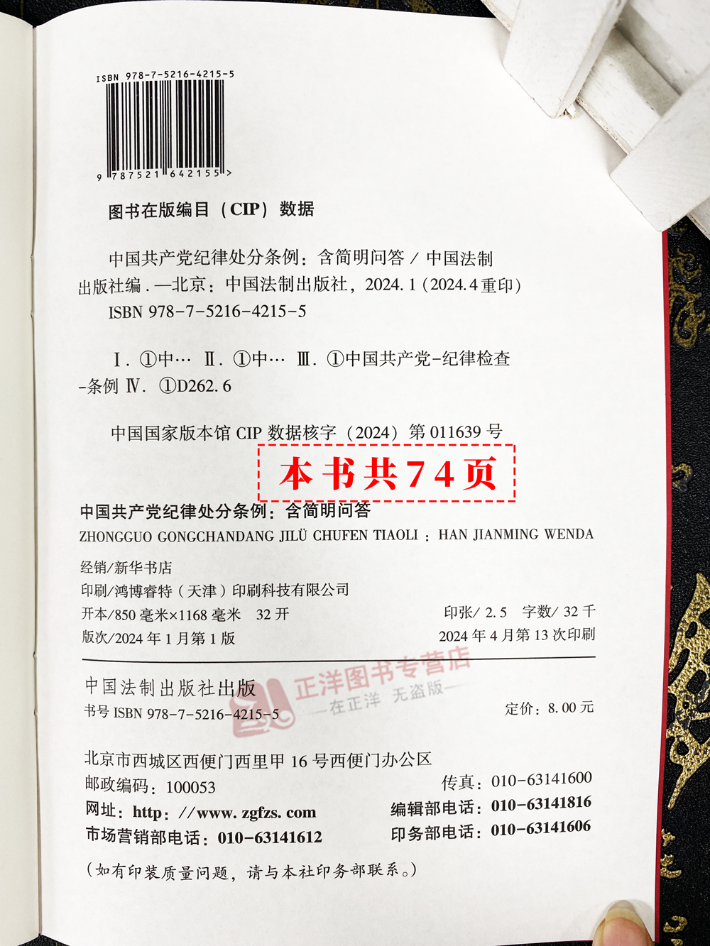 含简明问答 中国共产党纪律处分条例 32开大字版 红皮烫金小红本单行本新修订 法制社 现货速发 纪检监察党内法规党政书 2025适用