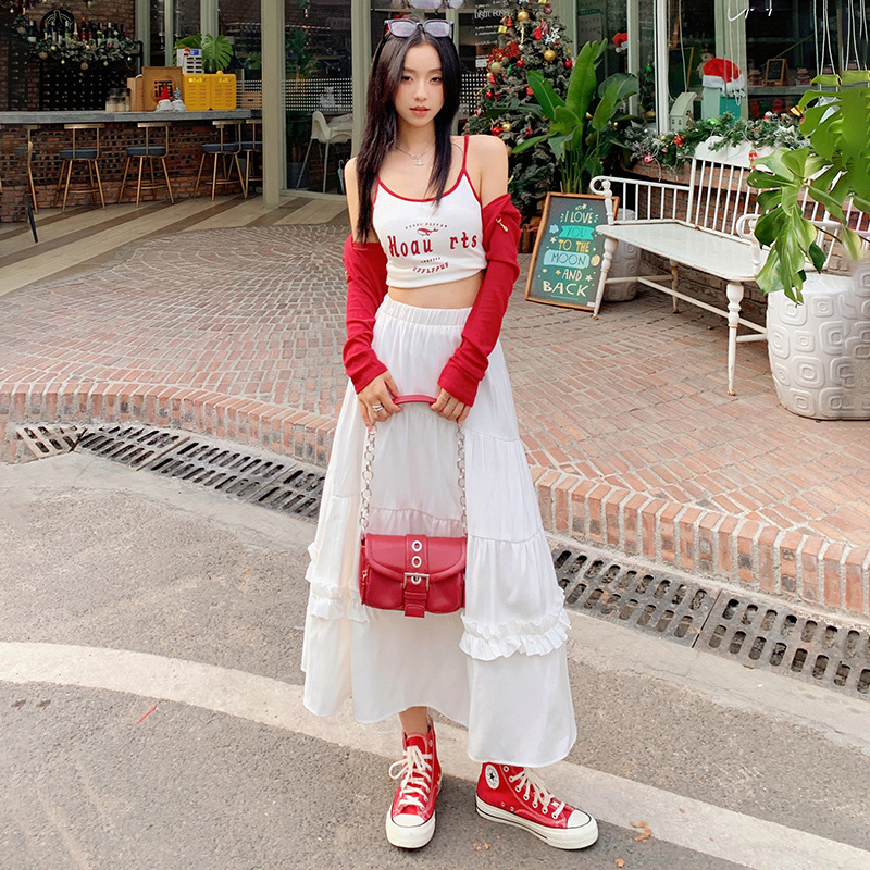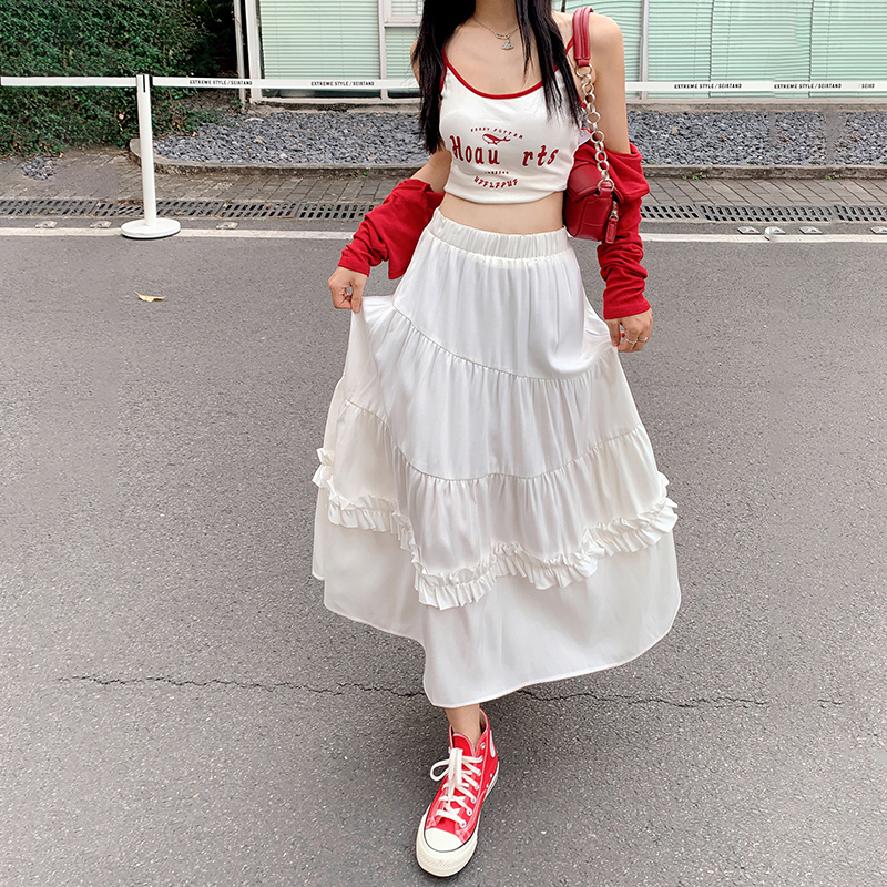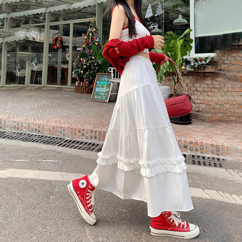 白色蛋糕裙女春秋夏2025新款 a字半身裙宽松韩系蓬蓬裙 高腰中长款
