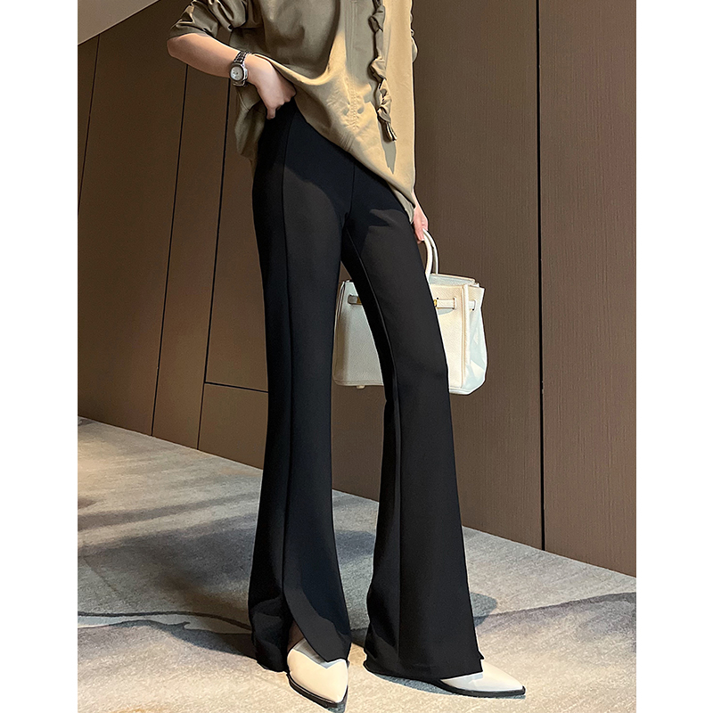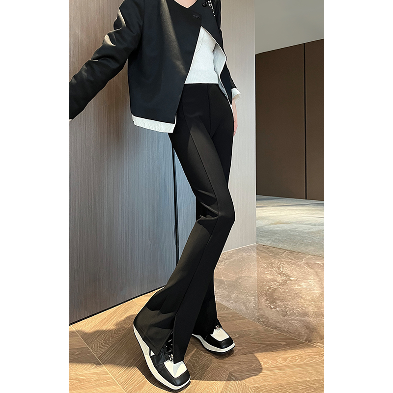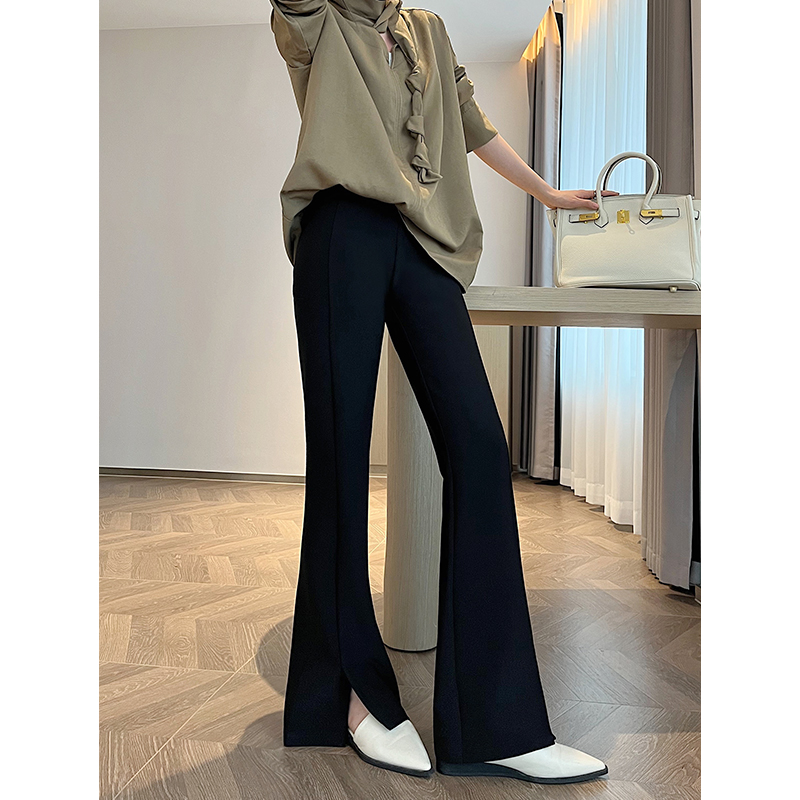 马蹄微喇裤 垂坠感直筒西装 女高腰显瘦2024春秋新款 开叉黑色喇叭裤
