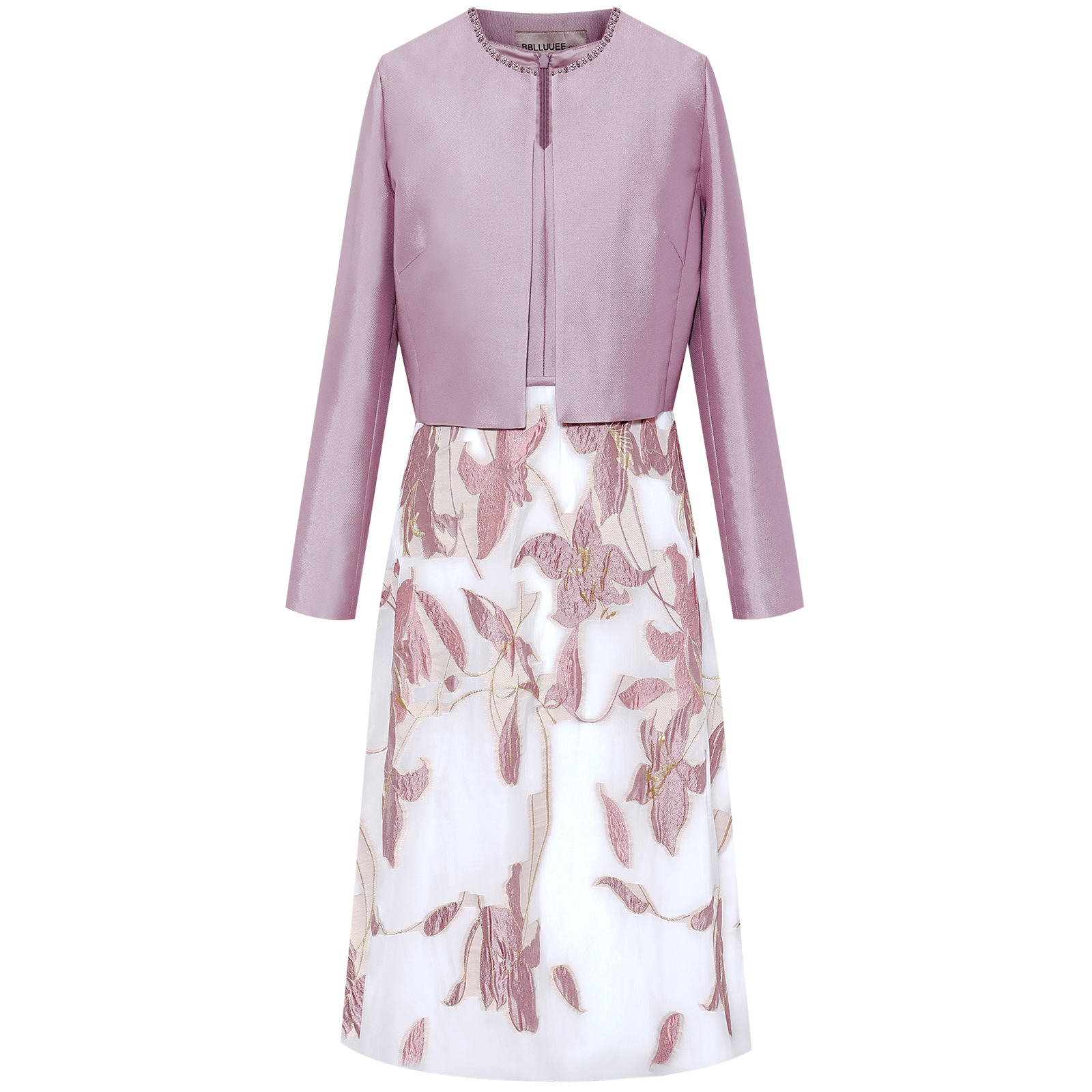 BBLLUUEE粉蓝衣橱2025秋定位花连衣裙两件套 国风提花礼服套装