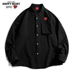 2025新款 查尔斯桃心 衬衫 长袖 情侣上衣翻领外套 日系纯色基础款