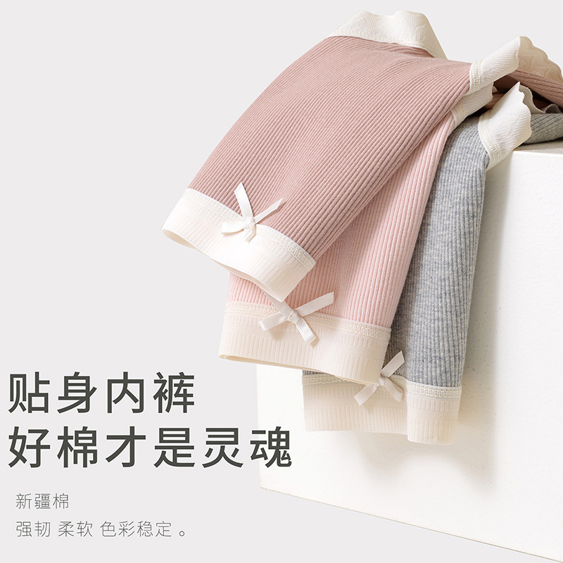 胖mm中青年短裤 女蕾丝边大码 头 纯棉中腰螺纹棉三角内裤 太透气了