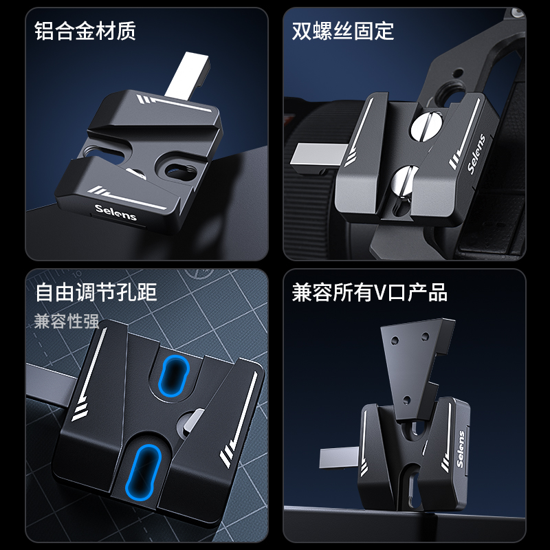 板可搭配RS3供电底座V型外接挂板快装 4双螺丝孔安装 板拓展配件 喜乐仕兔笼V口电池挂板转接相机兔笼1 Selens