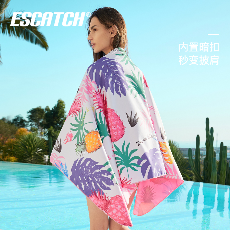亿斯卡游泳浴巾女速干健身运动毛巾海边防晒沙滩吸水巾便携浴袍