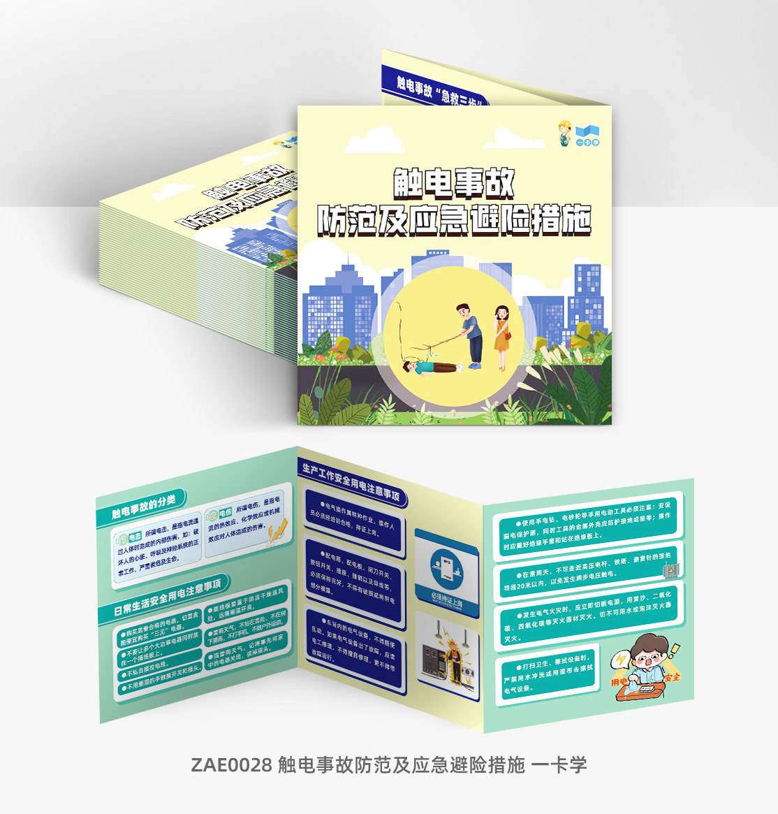 包发票 安全折页 触电事故防范及应急避险措施一卡学50张2025全国安全生产月主题安全生产月消防安全宣传品员工培训资料知识宣教