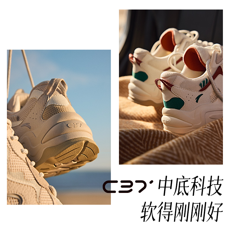 革网拼接复古时尚 运动鞋 老爹鞋 黑色休闲女鞋 男女同款 安踏星光2