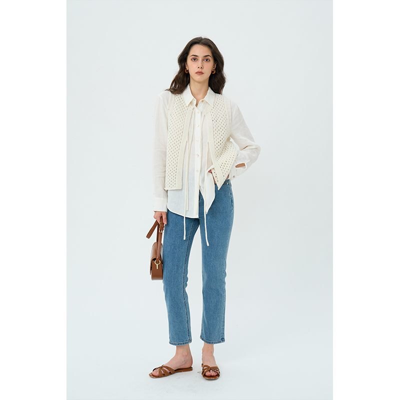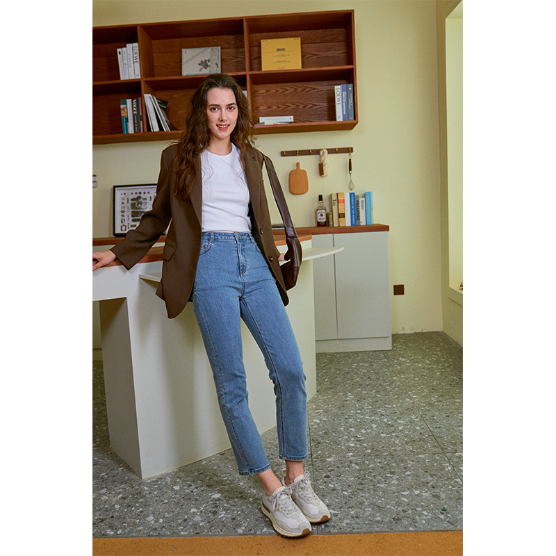 丹宁色修身 新款 显瘦阔腿裤 时尚 王家有鱼 通勤牛仔裤 小个子定制