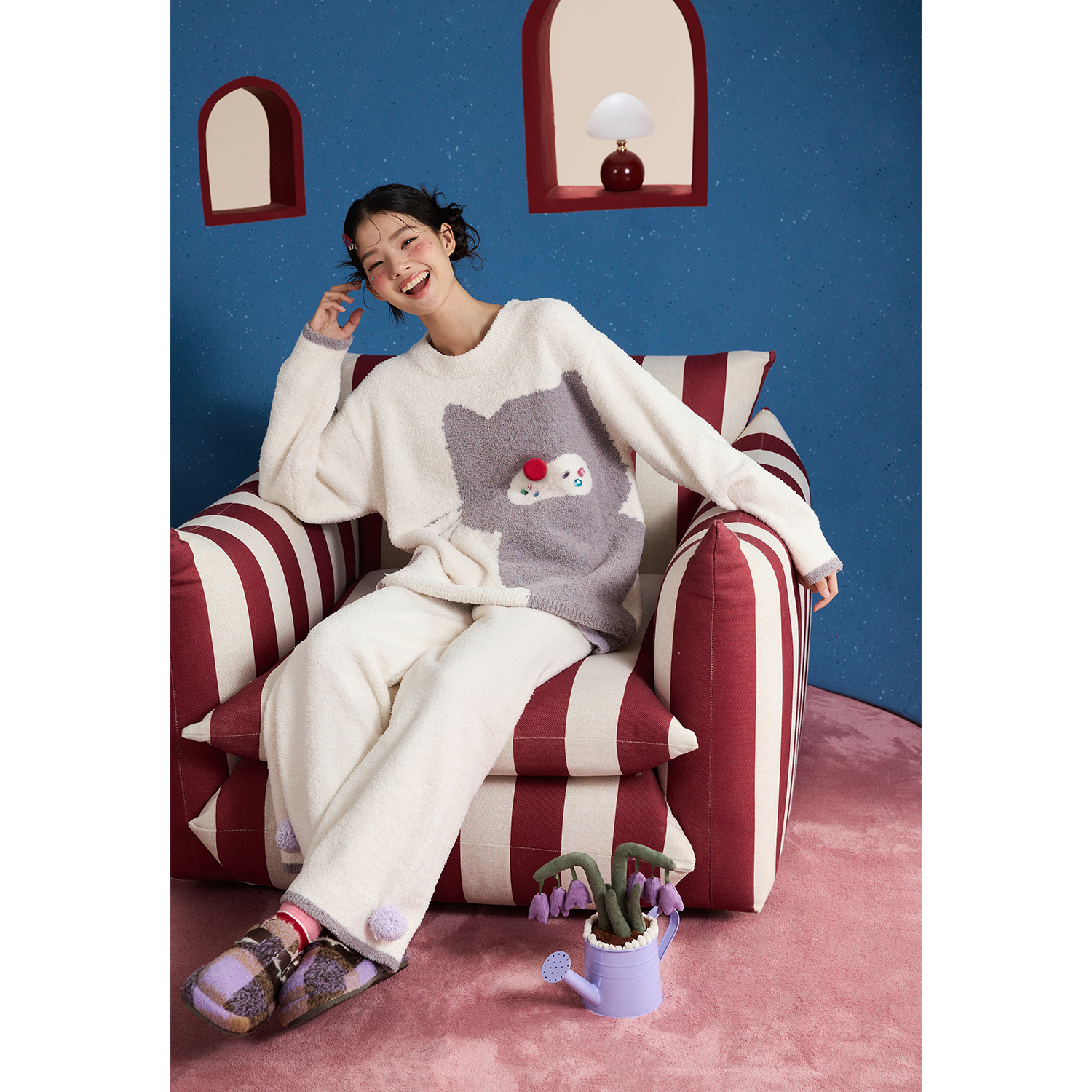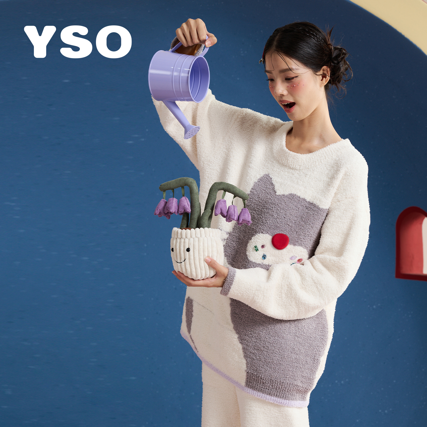 雪尼尔新款 yso 套装 睡衣女冬季 半边绒睡衣卡通家居服D 定金预售