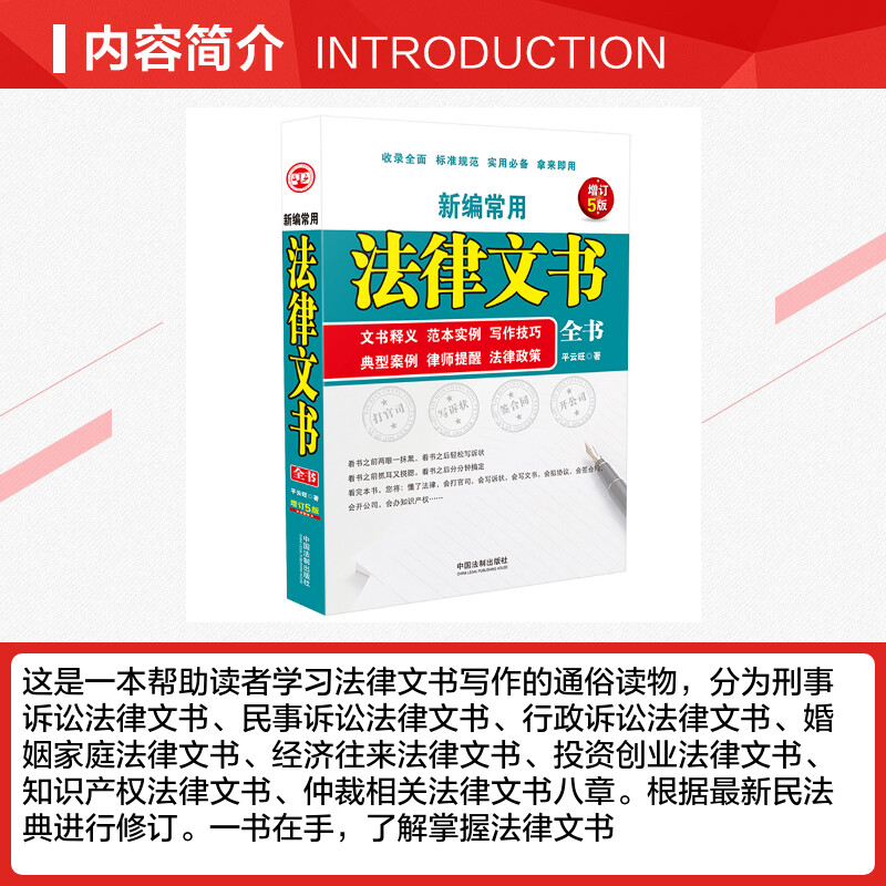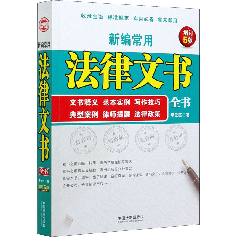 增订5 文书释义 律师提醒 新编常用法律文书全书 平云旺 等 写作技巧 徐宪江 范本实例 编 典型案例 著 法律政策