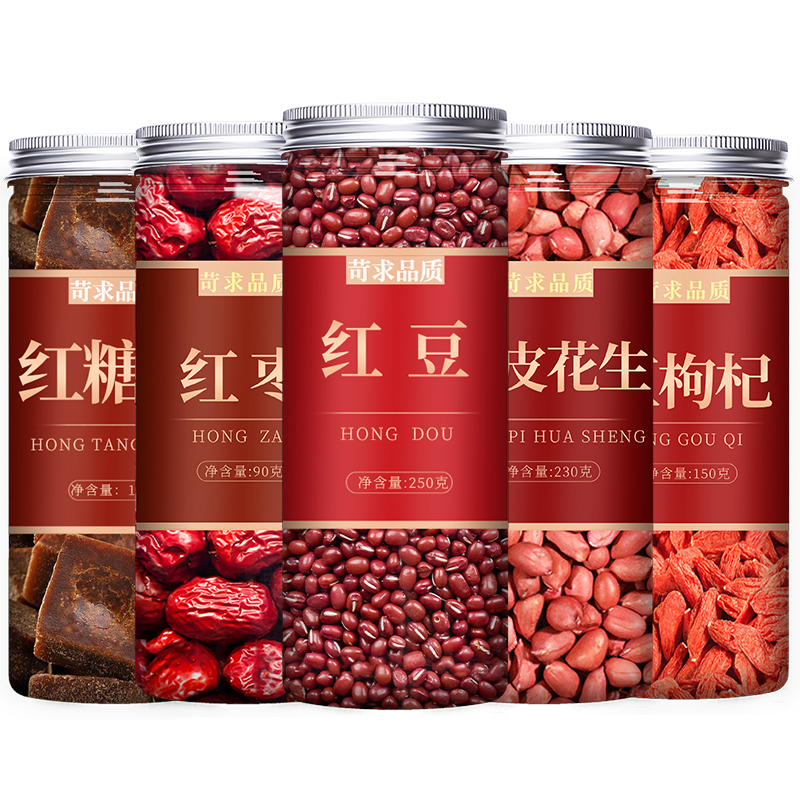 红豆红枣花生枸杞红糖五红汤原材料包补气养血月子女神粥补血食材