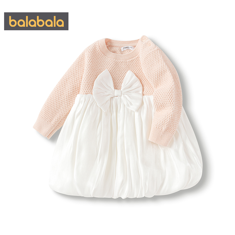 乐町假两件针织撞色长裙女装 直筒宽松长裙镂空蕾丝小标连衣裙 冬季