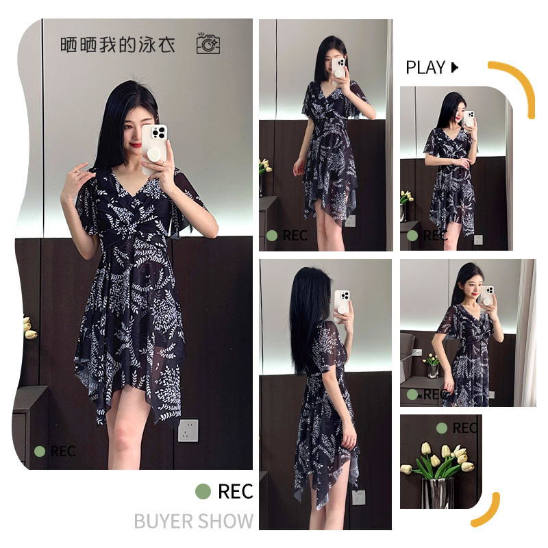 2025新款 泳衣 小清新仙气幻蝶泳衣女连体三角竞速游泳馆专业爆款