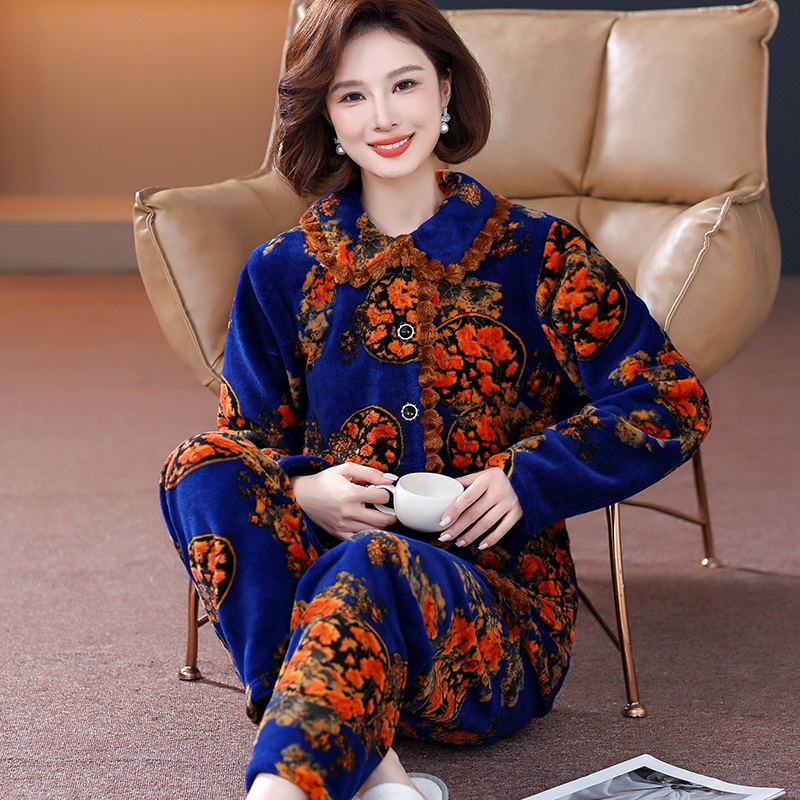红豆珊瑚绒睡衣冬季 情侣抗菌防静电男女士加绒加厚保暖家居服套装