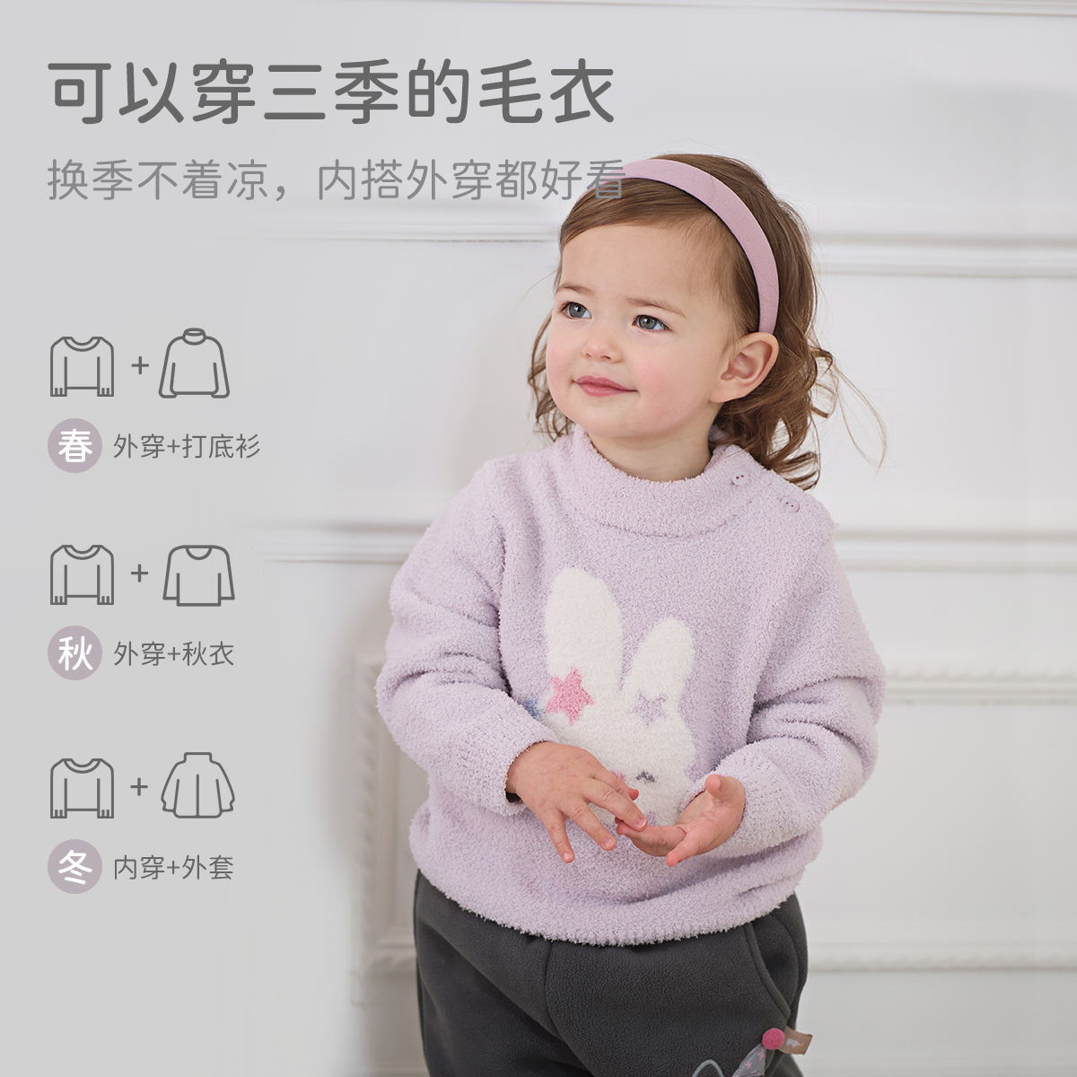 男女童半边绒半高领套头衫 戴维贝拉儿童毛衣保暖冬季 双11预售