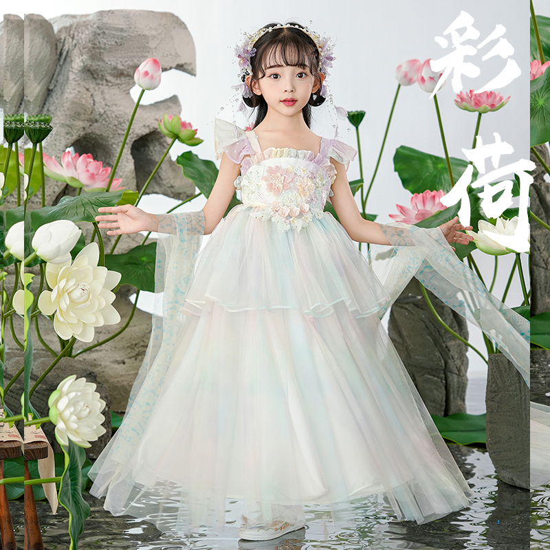 夏季 中秋节汉服女童连衣裙2025新款 古风花神襦裙中国风儿童古装