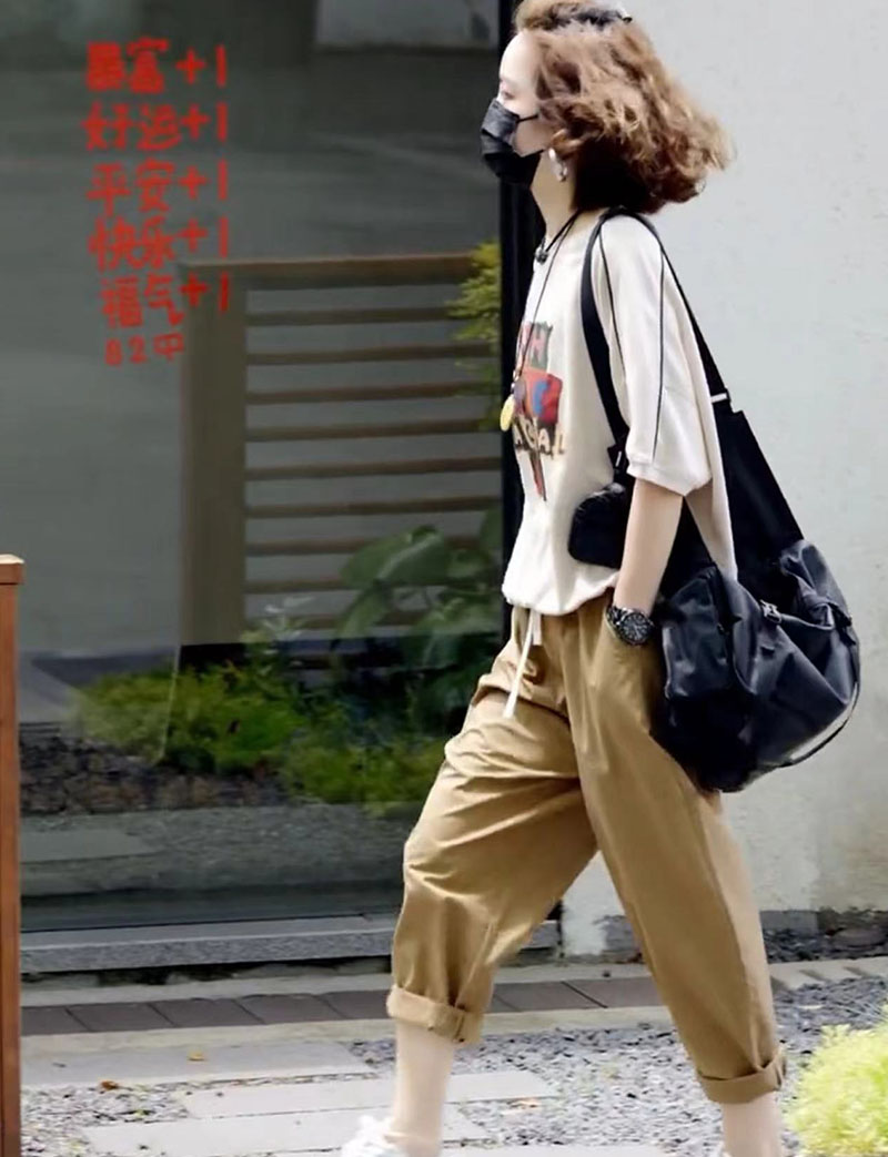水洗棉休闲哈伦裤 休闲时尚 字母印花T恤 新款 潮 两件套女2024年夏季