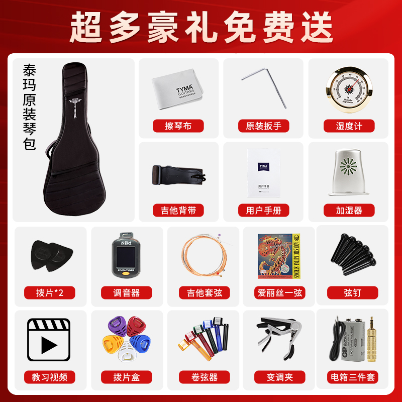 泰玛TYMA吉他民谣考级D3系列女生木吉他初学者男女生专用电箱吉他