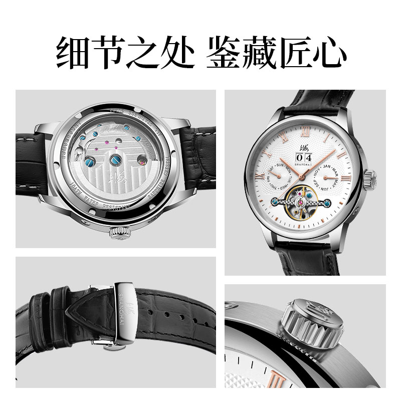 上海手表镂空全自动机械表夜光浮雕带防水男士 送爸爸飞轮 官方正品