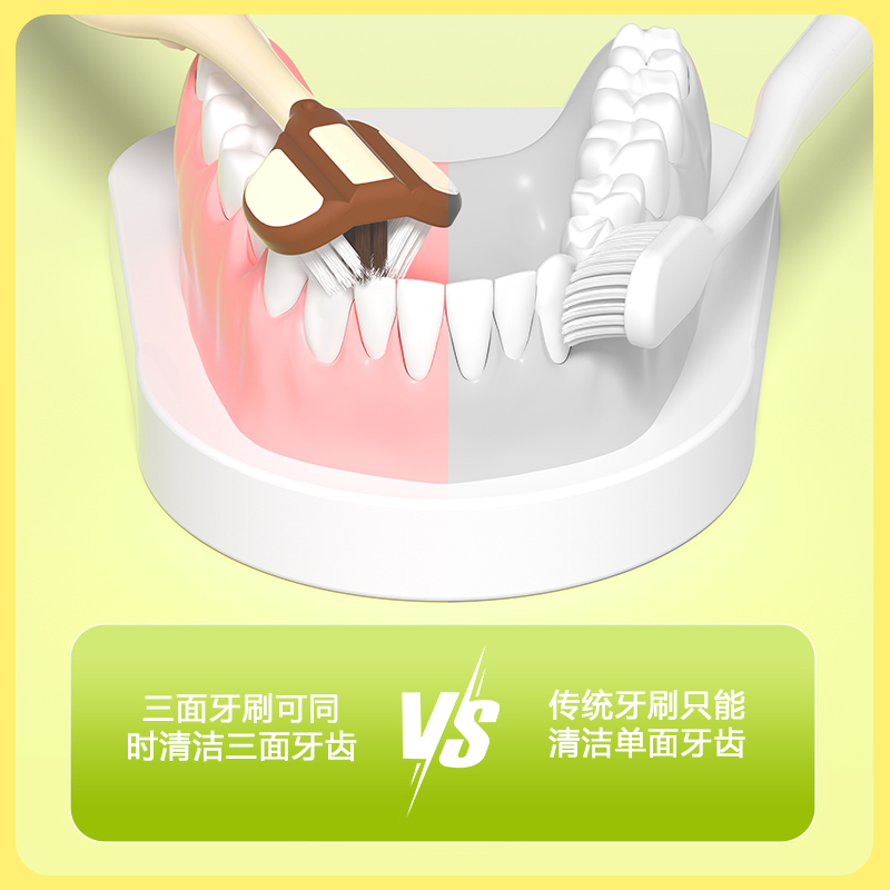 儿童三面牙刷软毛3到6 12岁换牙期三面三面包裹清洁牙刷宝宝牙刷