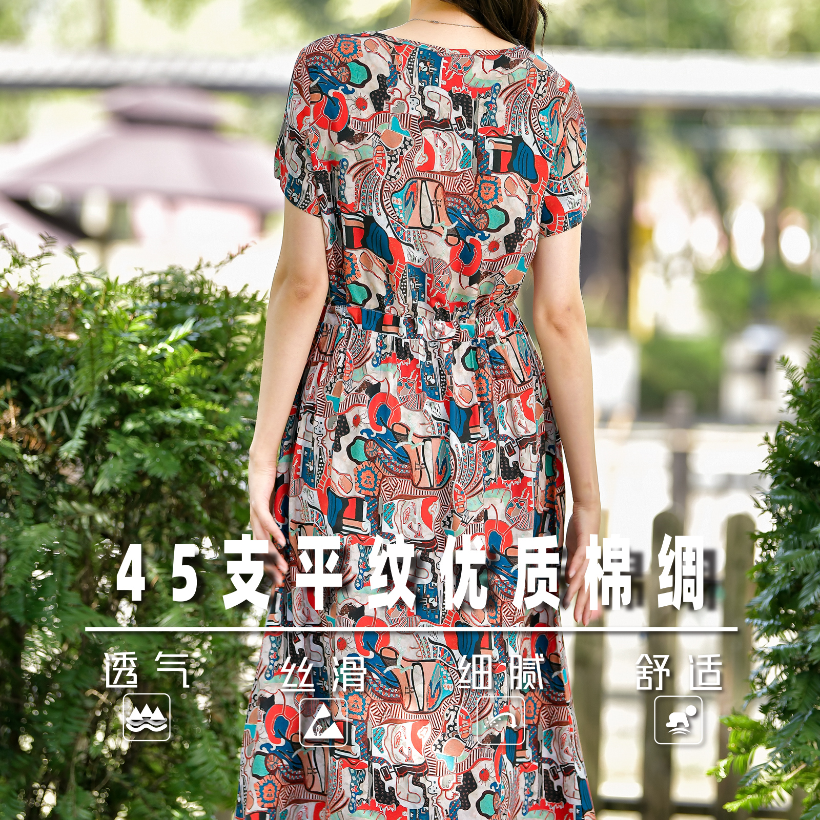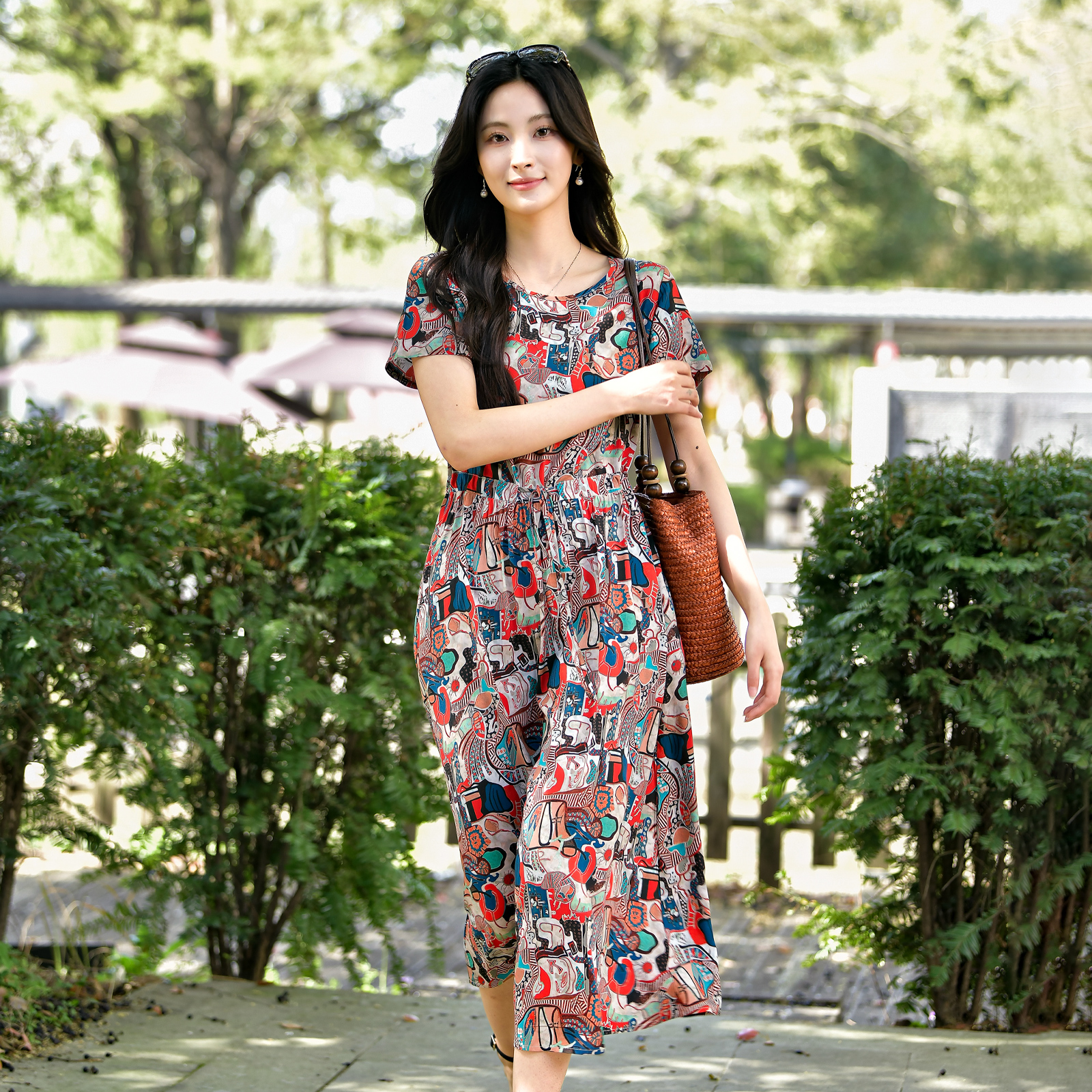 式 度假风腰部系带衬衫 植物印花长裙1217576 连衣裙25夏新款 HM女装