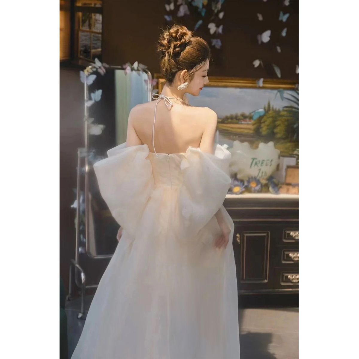 晨袍一字肩轻婚纱新娘结婚迎宾出门纱高端轻奢订婚晚礼服裙敬酒服