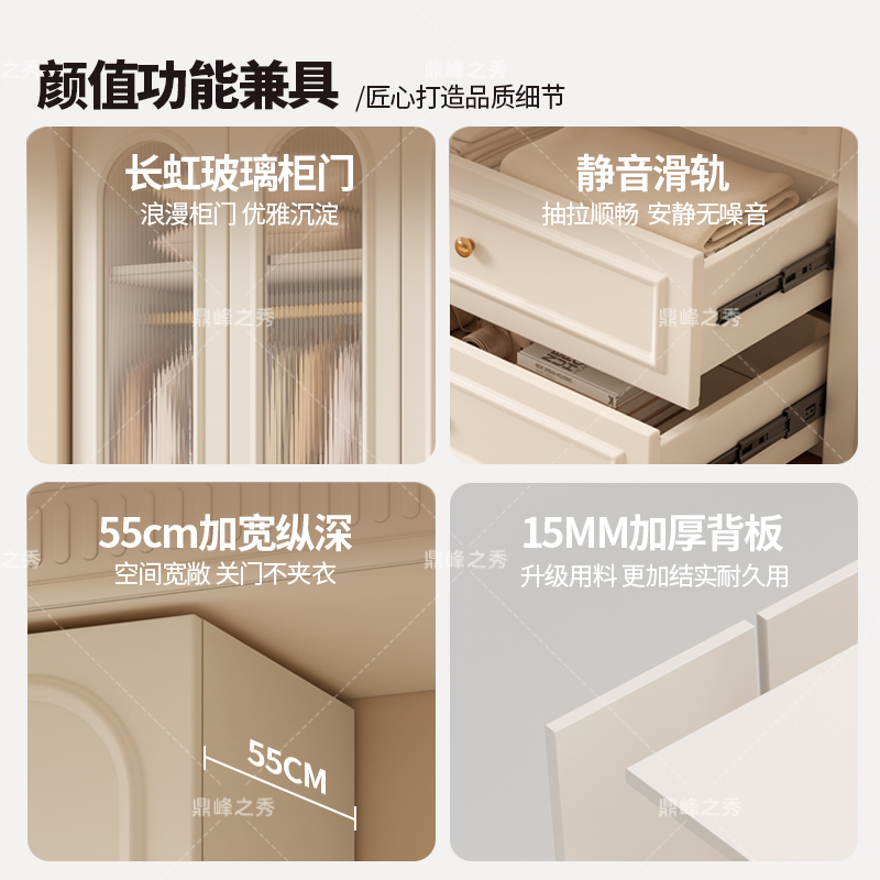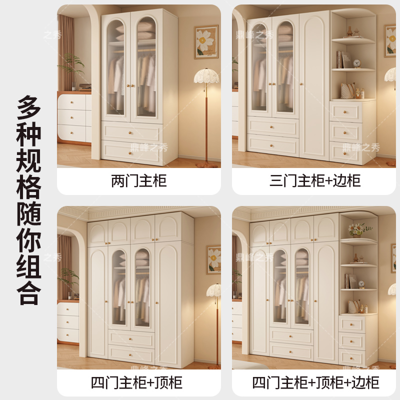 成品衣橱 法式 奶油风衣柜家用卧室简易实木衣柜出租房2025新款 爆款