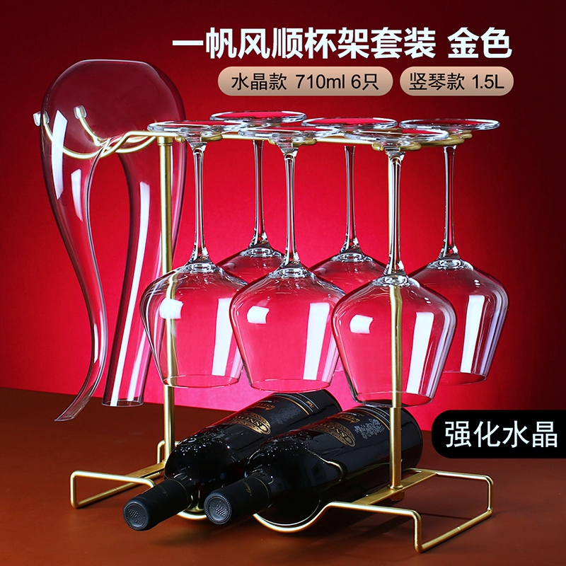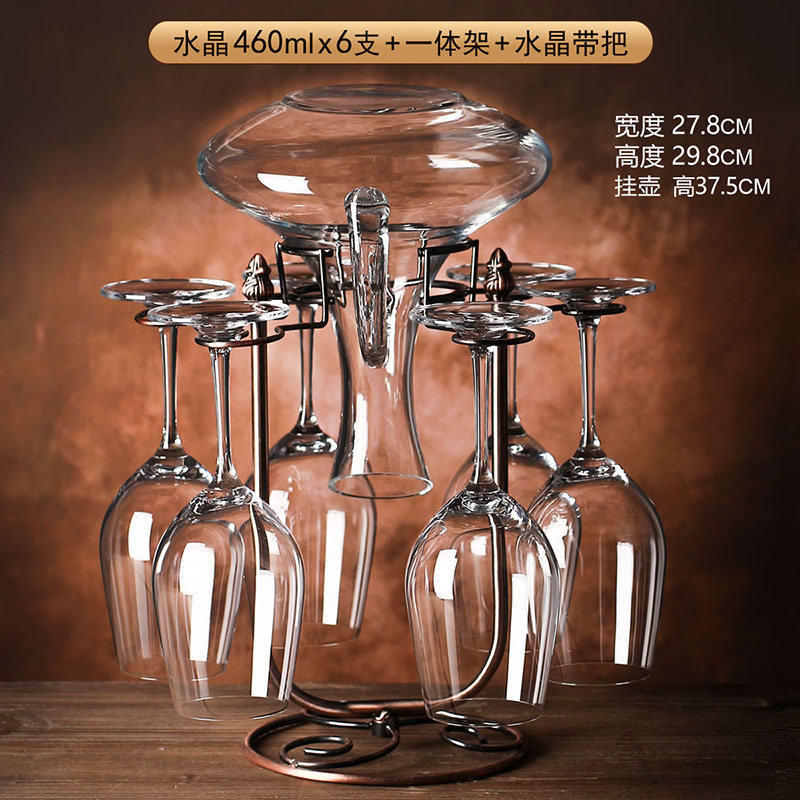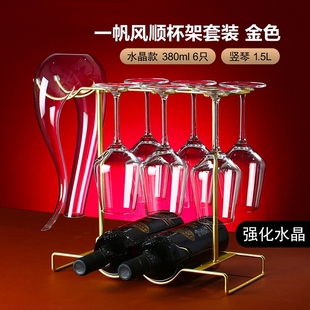 红酒杯套装 家用水晶玻璃酒具葡萄酒醒酒器一体杯架创意6只高脚杯