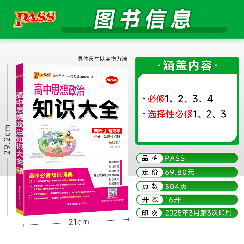选择性必修pass绿卡图书高一高二高三高考文科工具书基础知识清单总复习辅导资料 必修 新教材2026新版 高中思想政治知识大全通用版