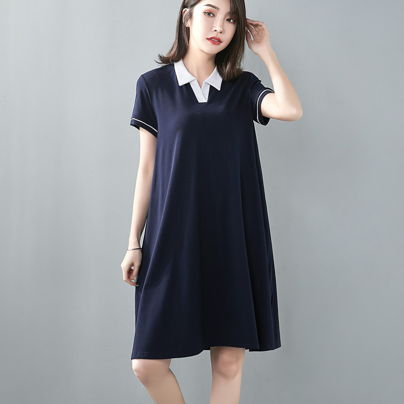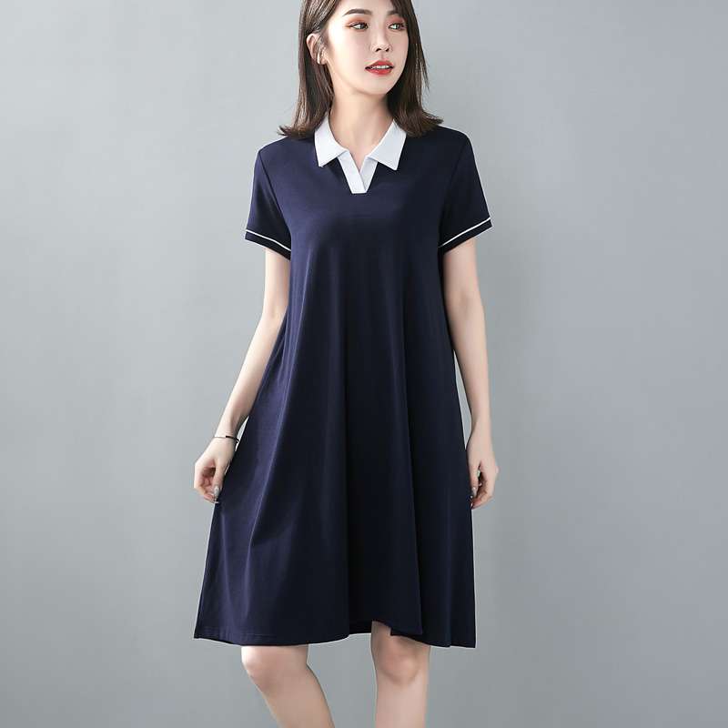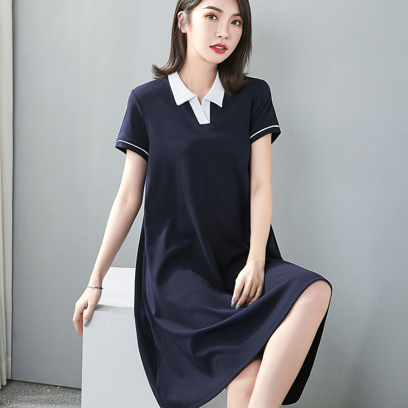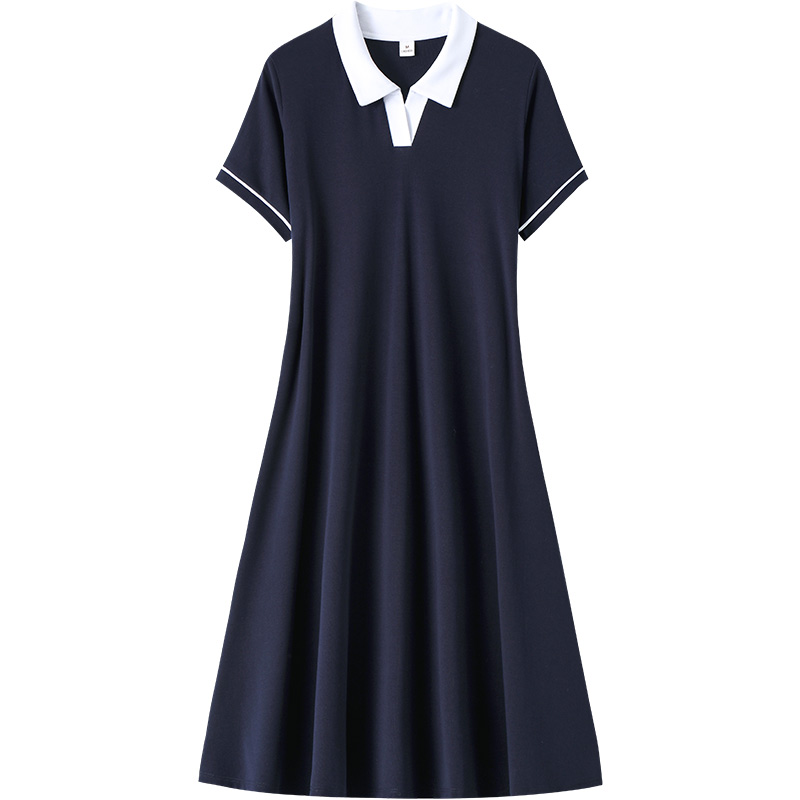 休闲气质高级感打底裙中长款 新款 连衣裙女夏季 纯色宽松polo领短袖
