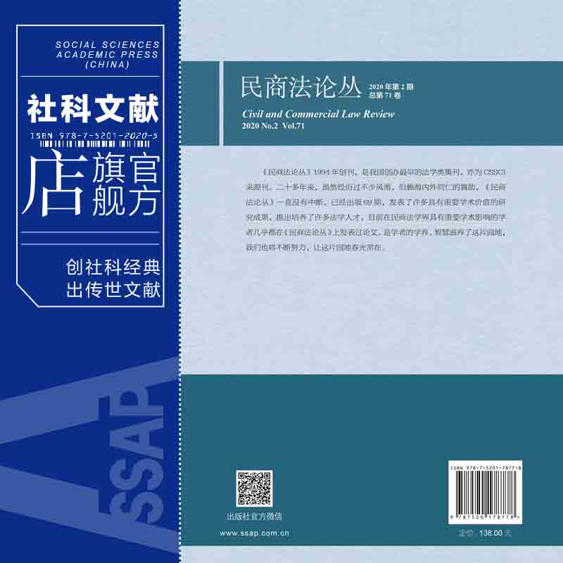 总第71卷 梁慧星 社 官方正版 202103 社会科学文献出版 民商法论丛2020年第2期 副主编 现货 主编;朱广新