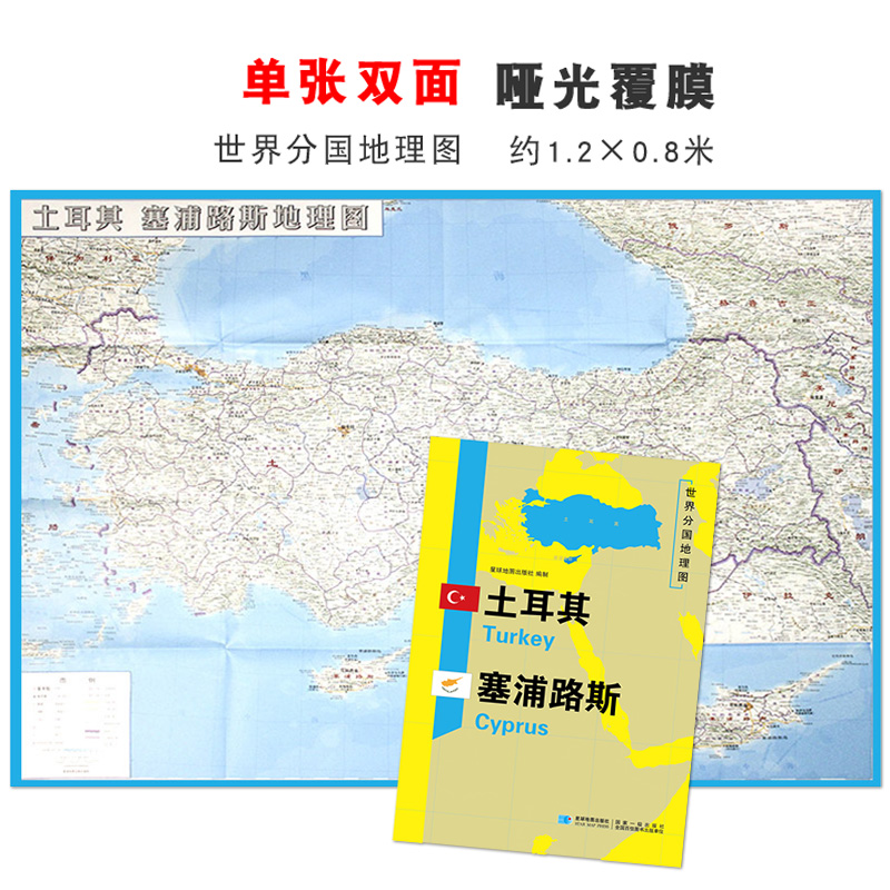 双面印刷 社 土耳其 星球地图出版 地理百科 折叠便携 1240x890mm 世界分国地理地图 塞浦路斯地图 折叠袋装