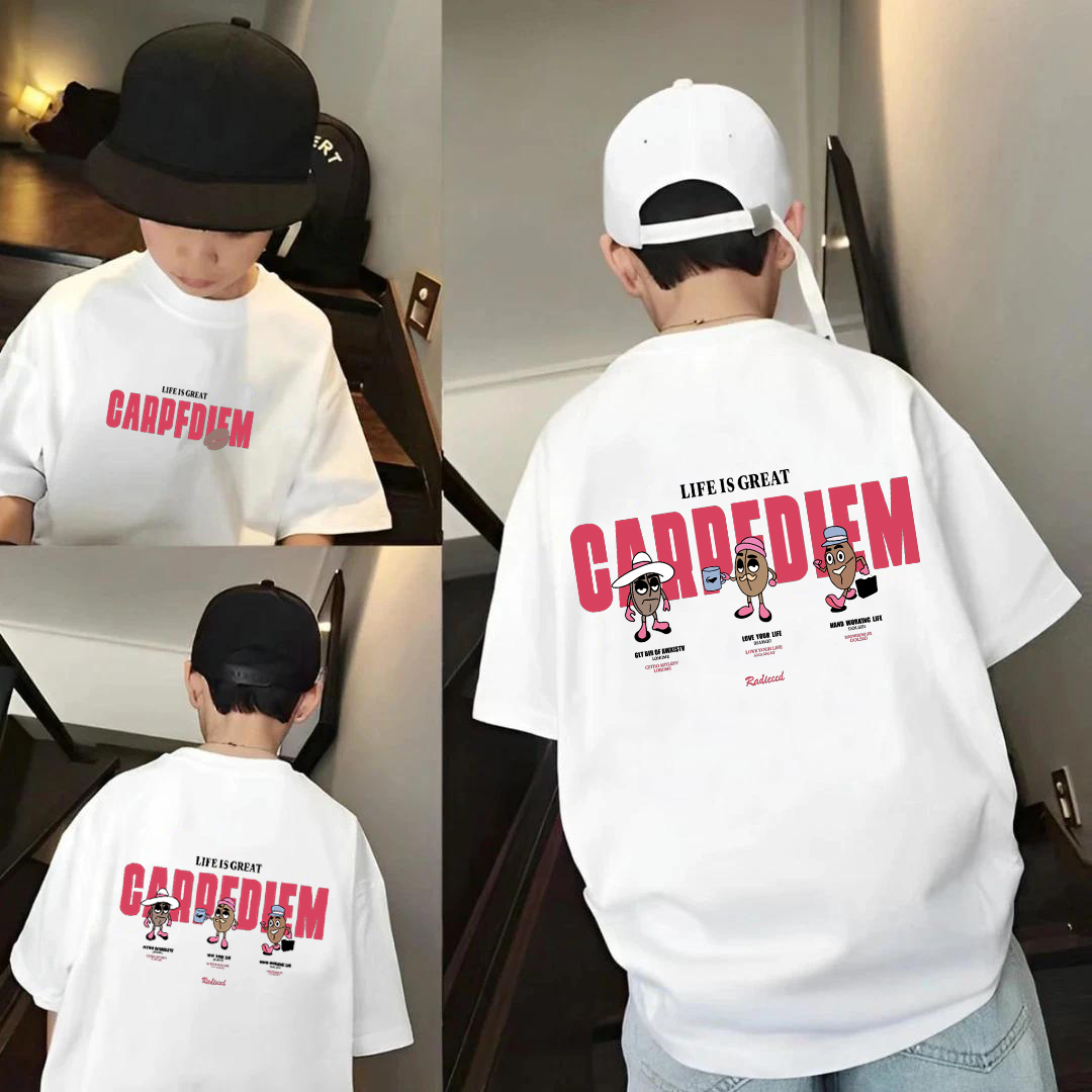 夏装 男童t恤短袖 儿童中大童男孩上衣宽松卡通潮 纯棉亲子童装 KKX