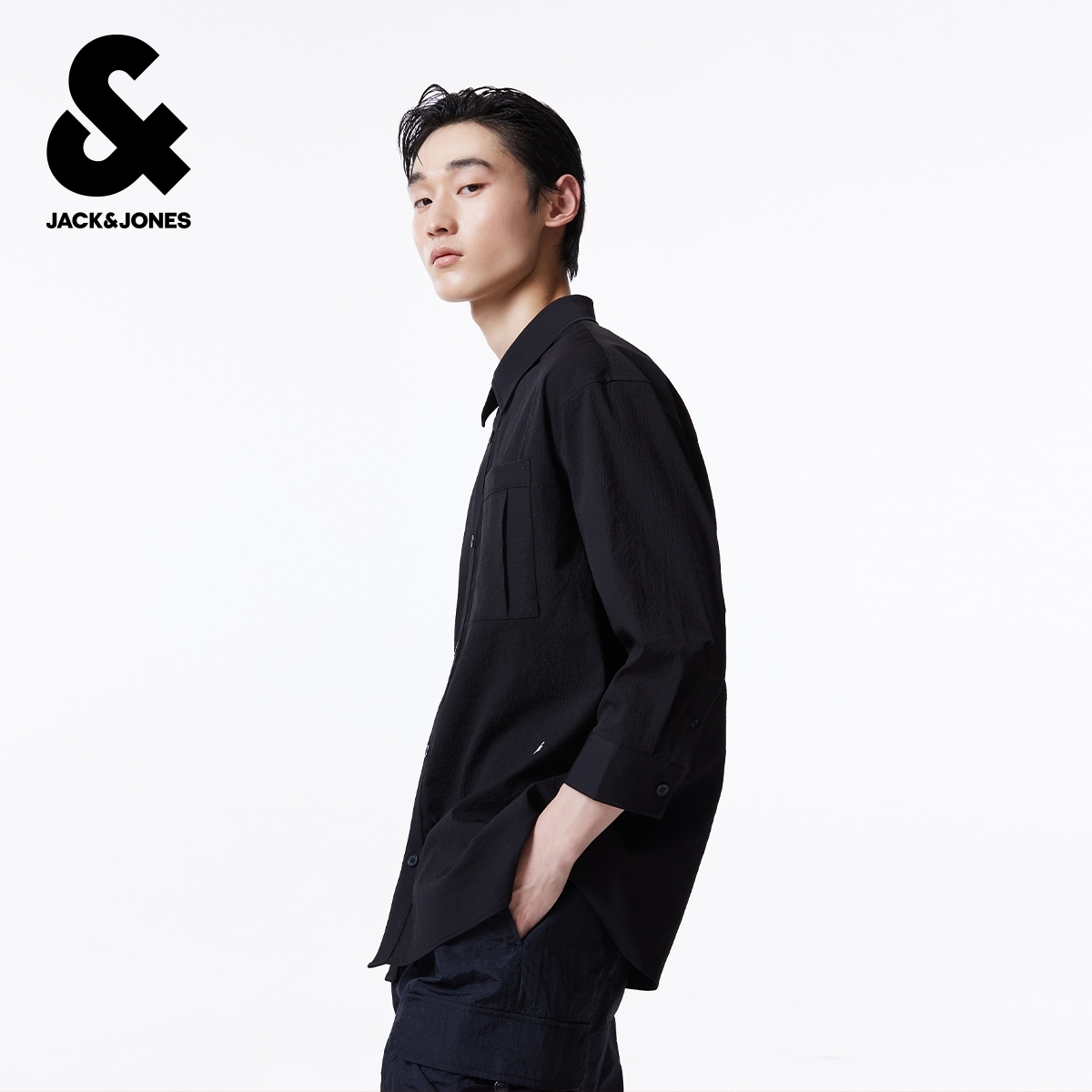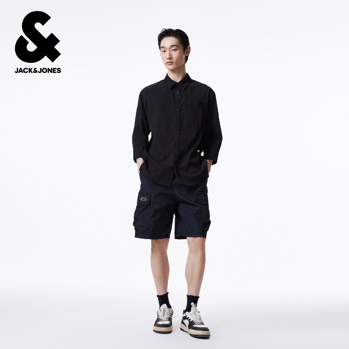 男装 杰克琼斯奥特莱斯夏季 衬衫 潮纽扣刺绣翻领宽松休闲七分袖 新款